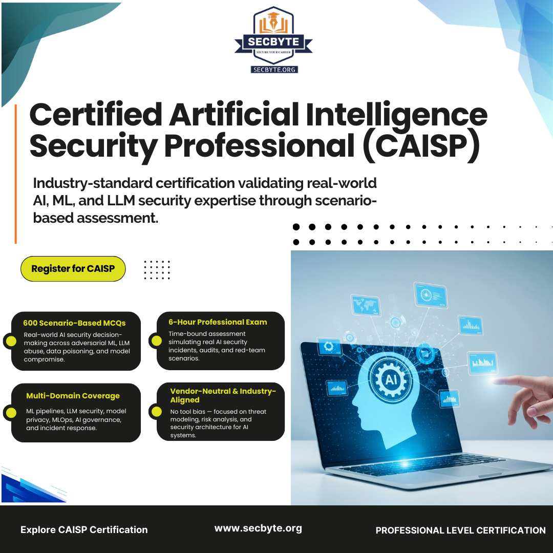 The Certified Artificial Intelligence Security Professional (CAISP) is an advanced, industry-aligned certification designed to validate real-world expertise in securing AI, machine learning, and large language model (LLM) systems across their entire lifecycle.