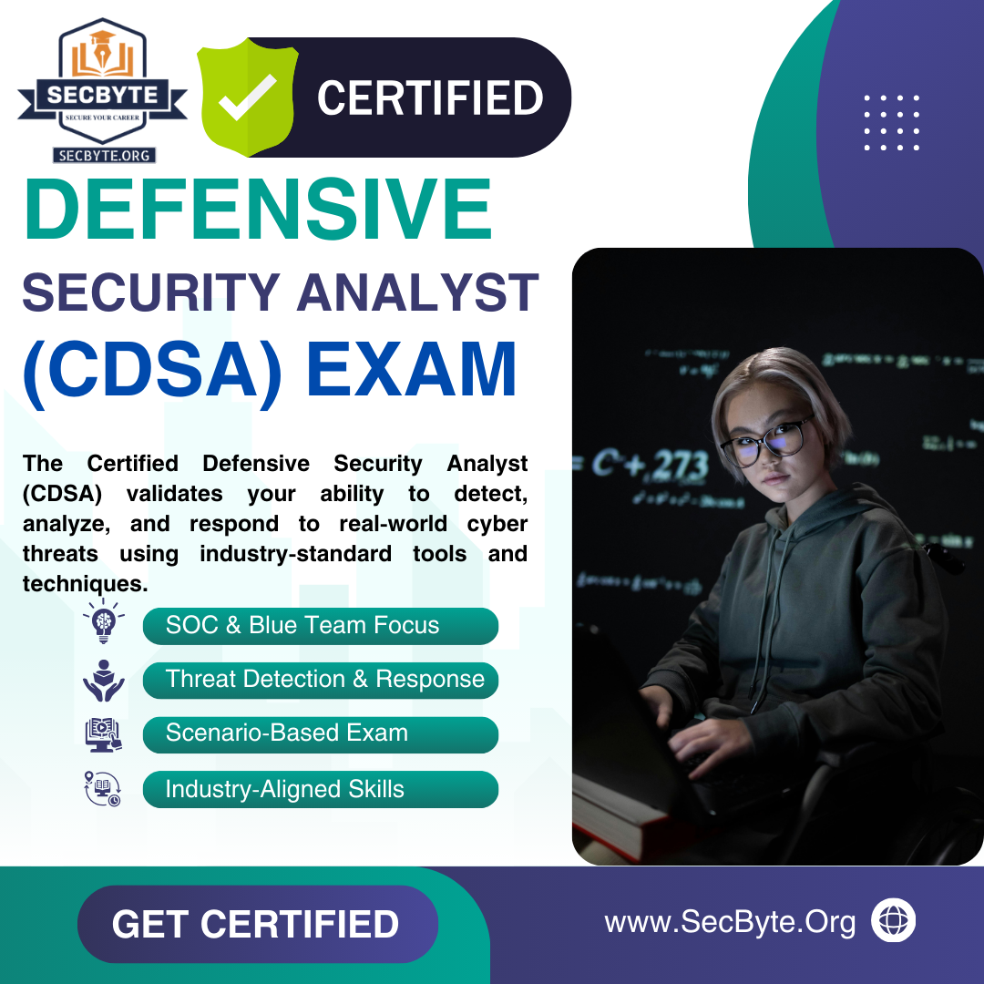 The Certified Defensive Security Analyst (CDSA) is a professional-level cybersecurity certification designed to validate practical, job-ready skills in defensive security, threat detection, and incident response.