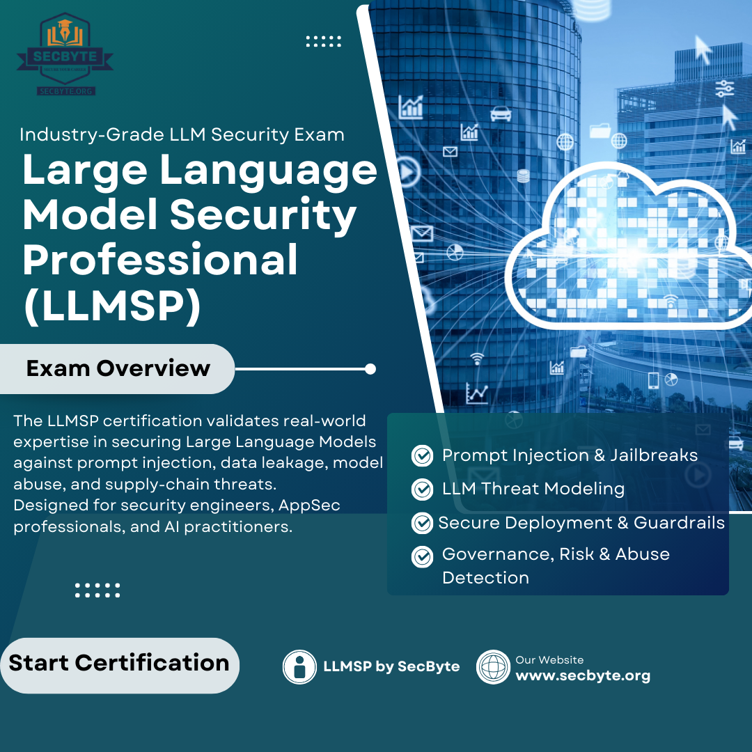 The Large Language Model Security Professional (LLMSP) certification is an industry-grade, vendor-neutral professional exam designed to validate real-world expertise in securing Large Language Models (LLMs) across modern enterprise environments. As organizations increasingly deploy LLMs into production systems—ranging from customer support bots to autonomous decision-making pipelines—the security risks associated with these systems have become mission-critical.