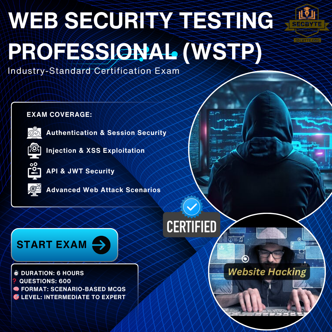 The Web Security Testing Professional (WSTP™) certification is an intensive, scenario-driven assessment designed to validate real-world web application security testing skills.